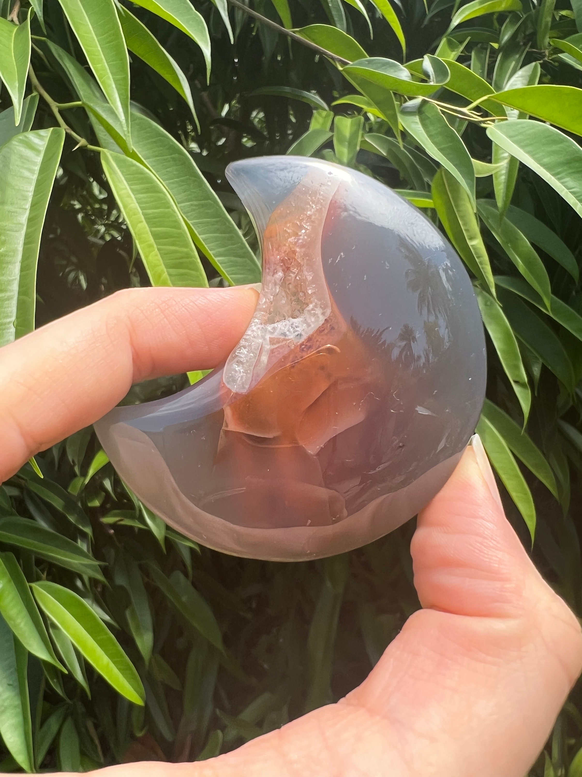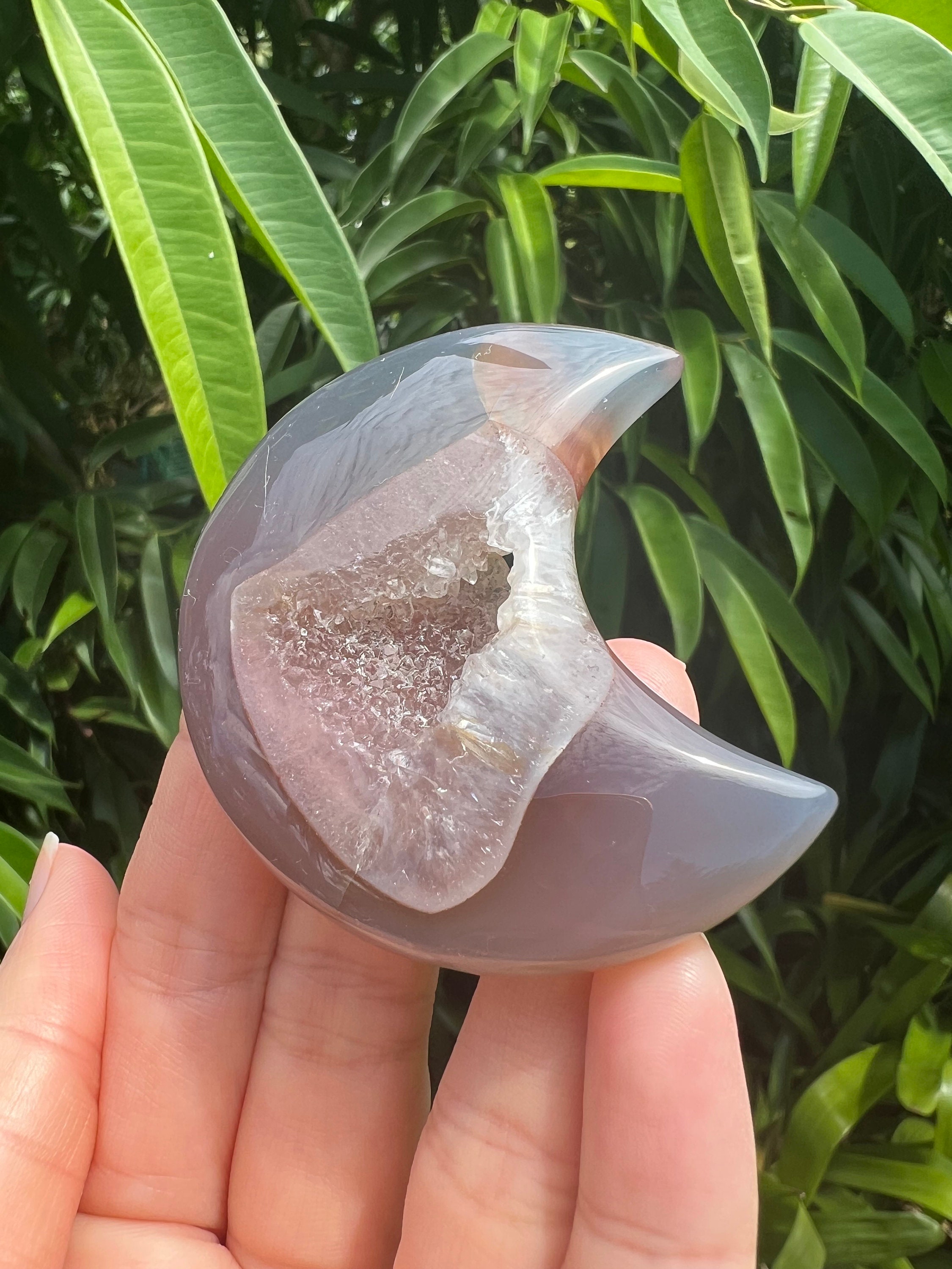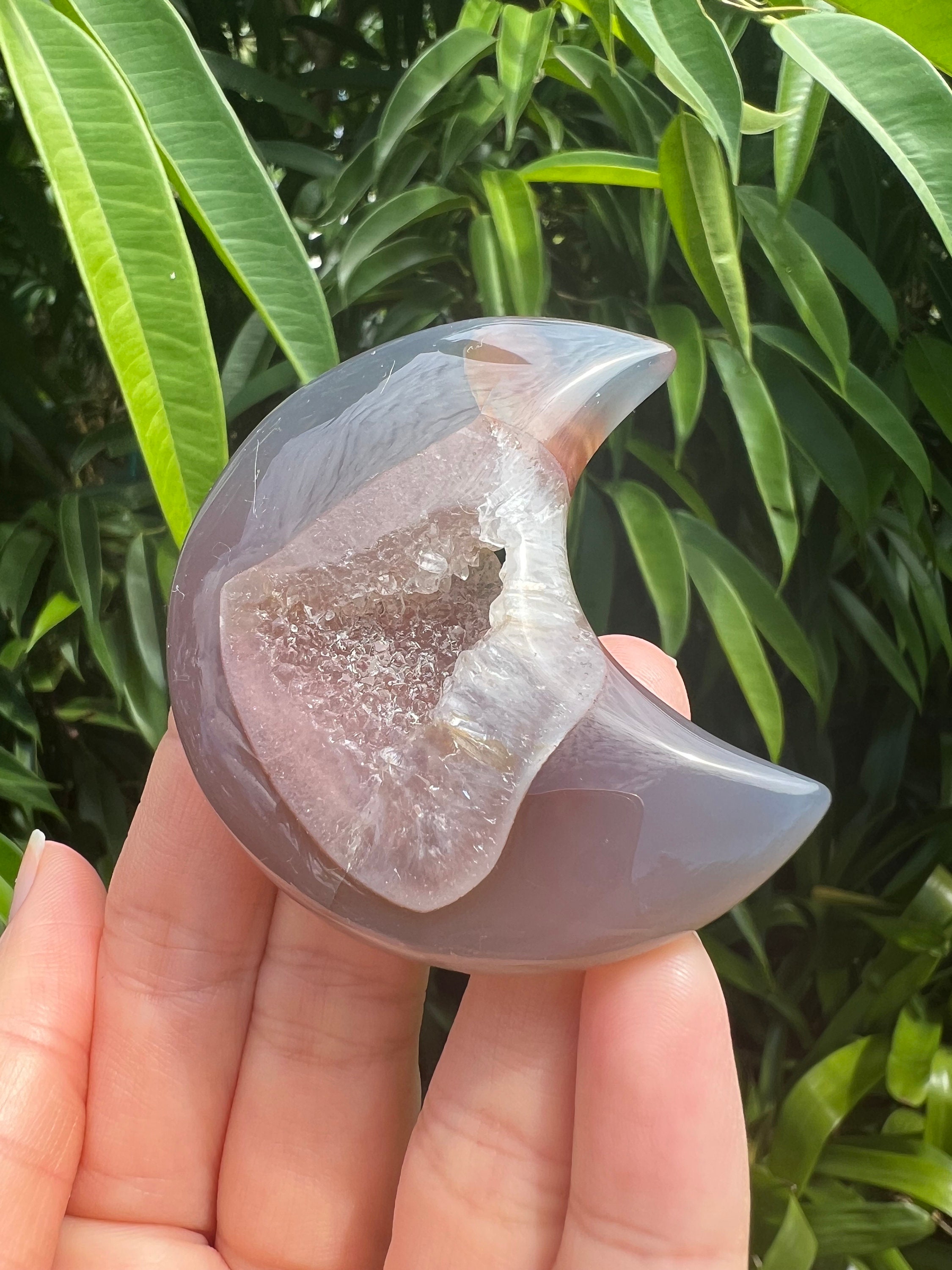 Druzy Crystal Moon Agate Carving