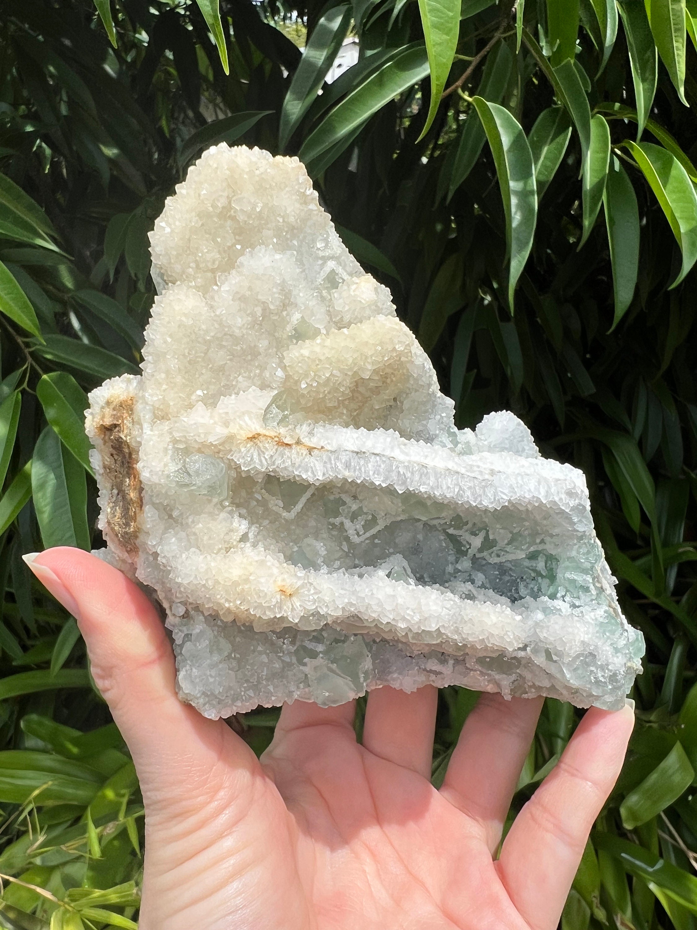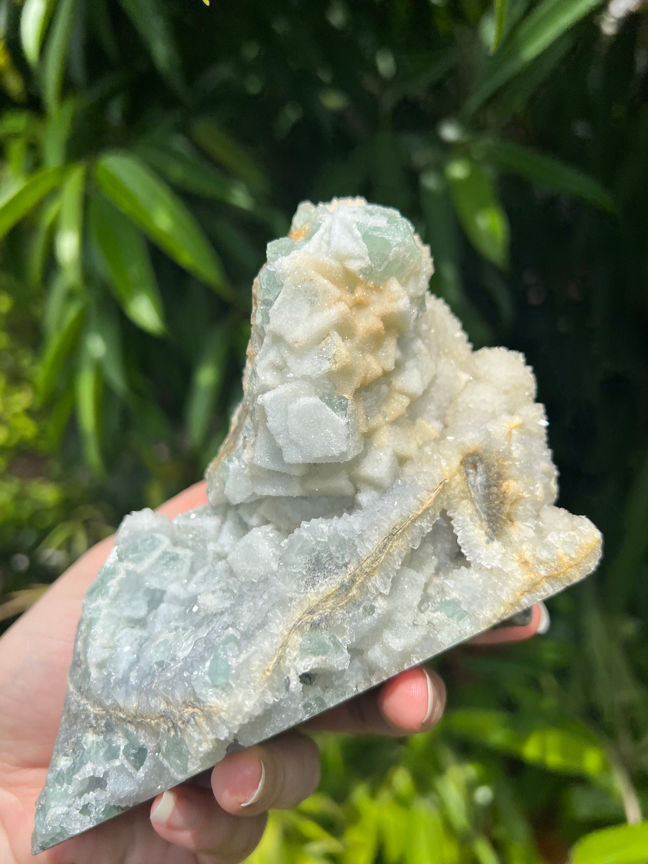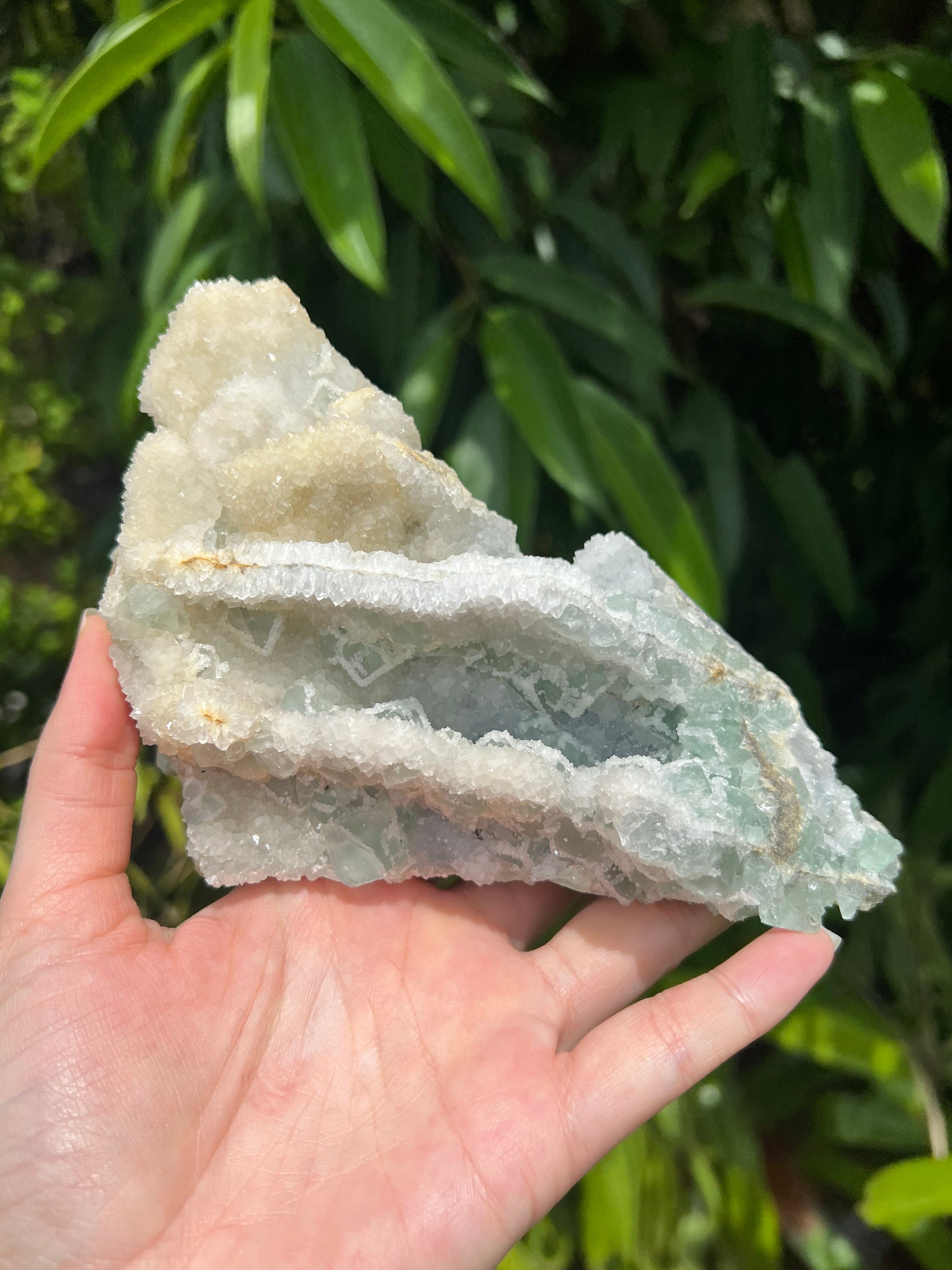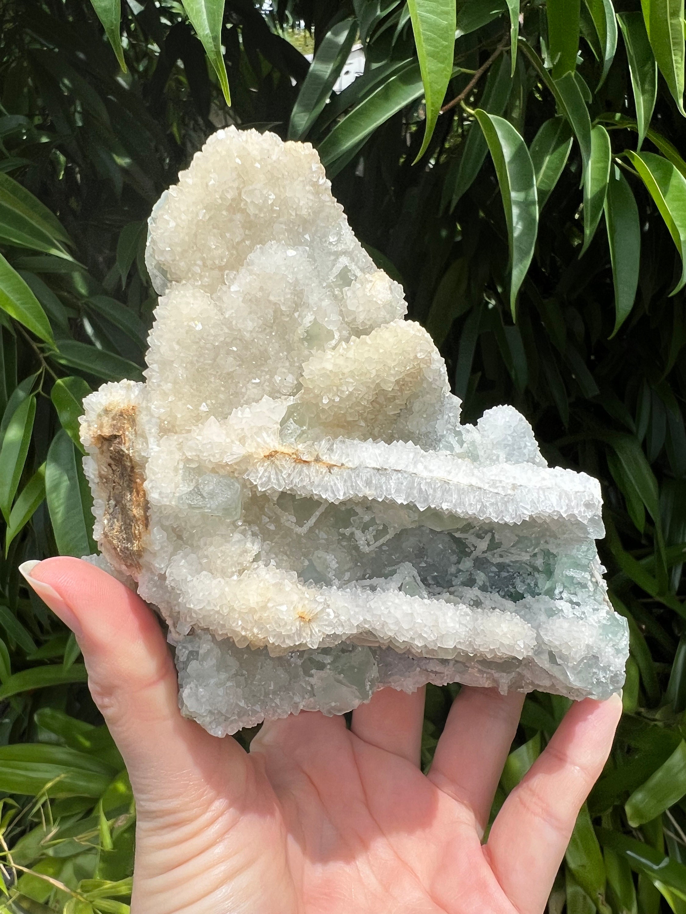 Translucent Green Sugar Fluorite Cluster with Druzy