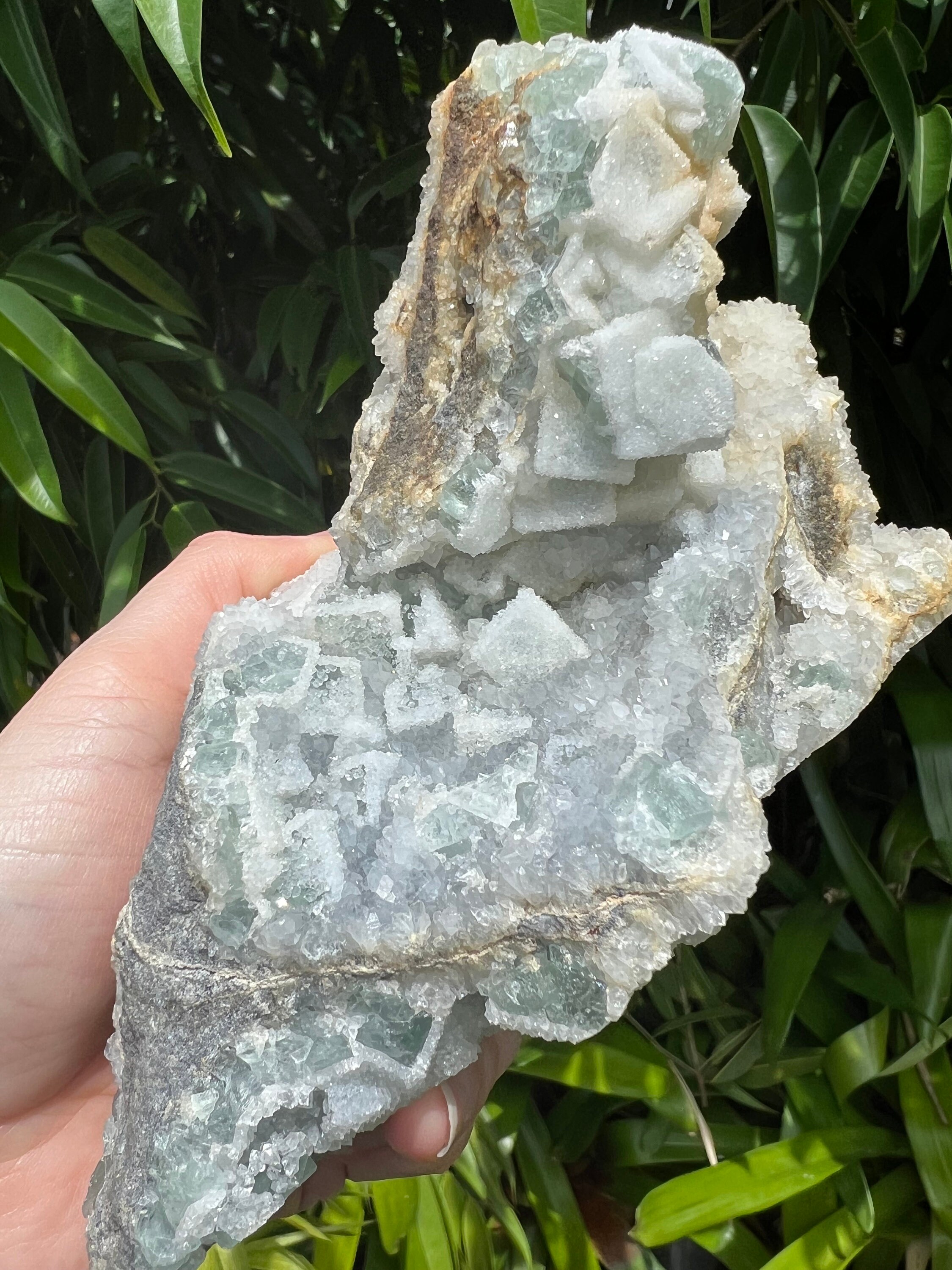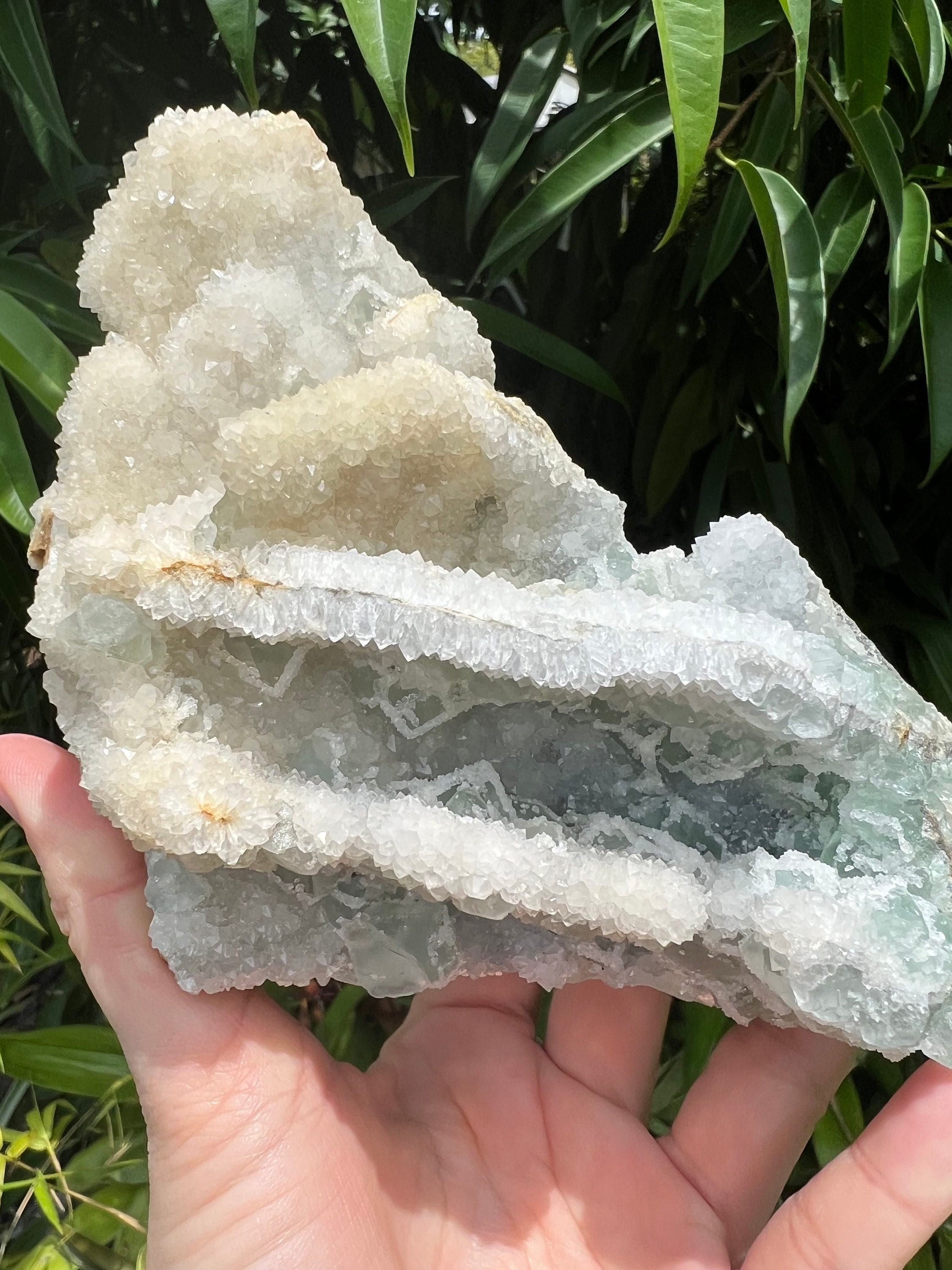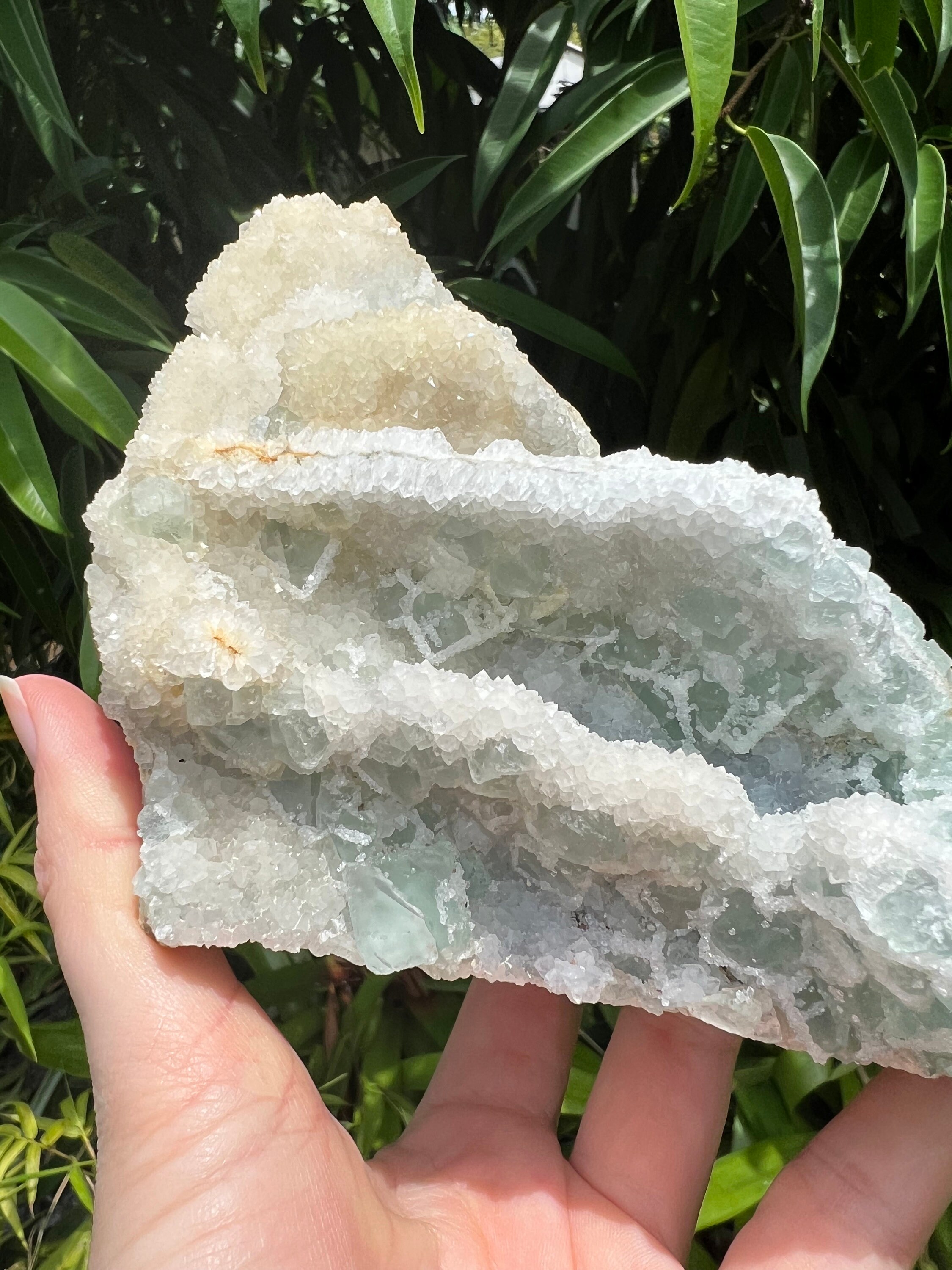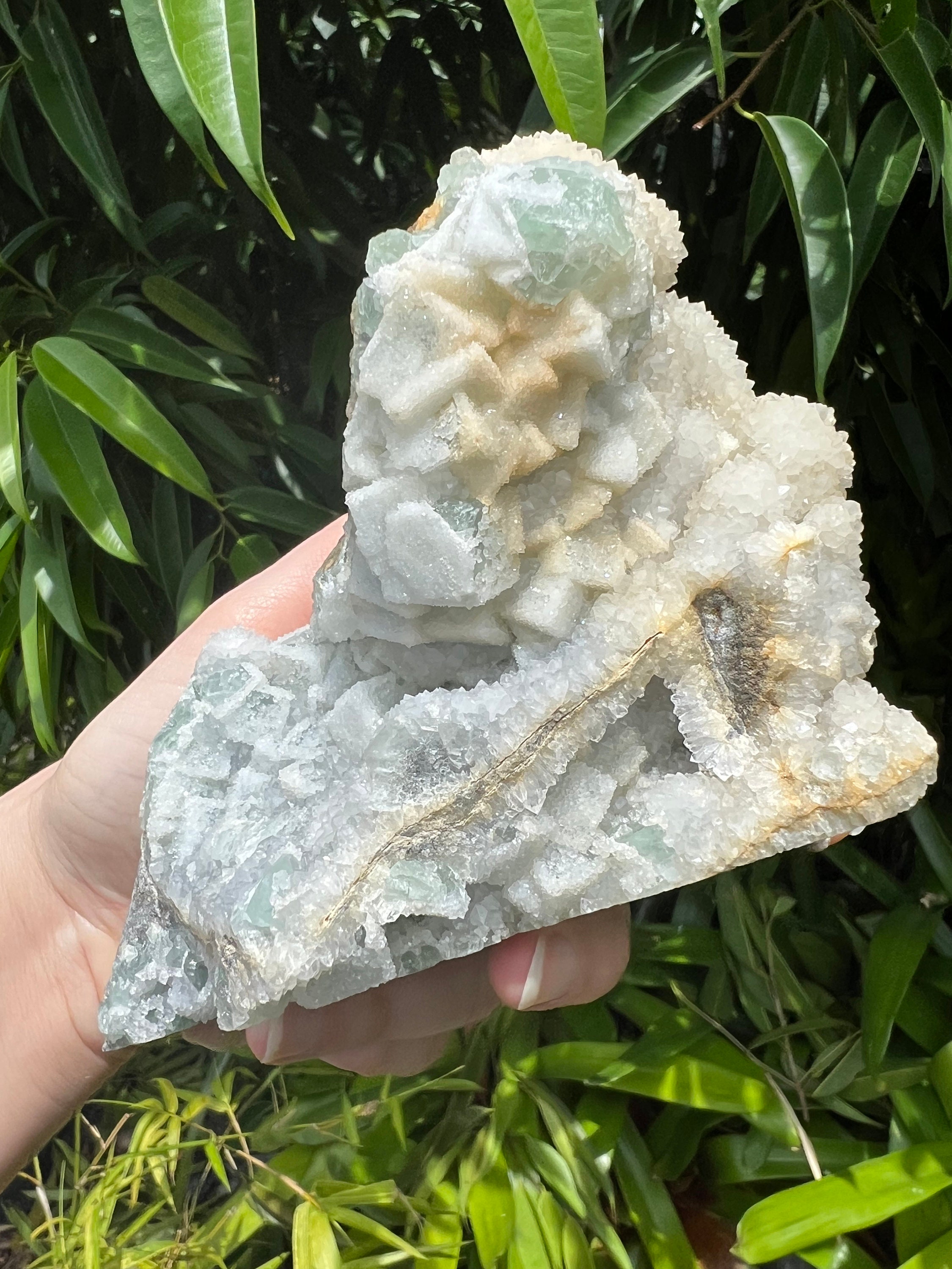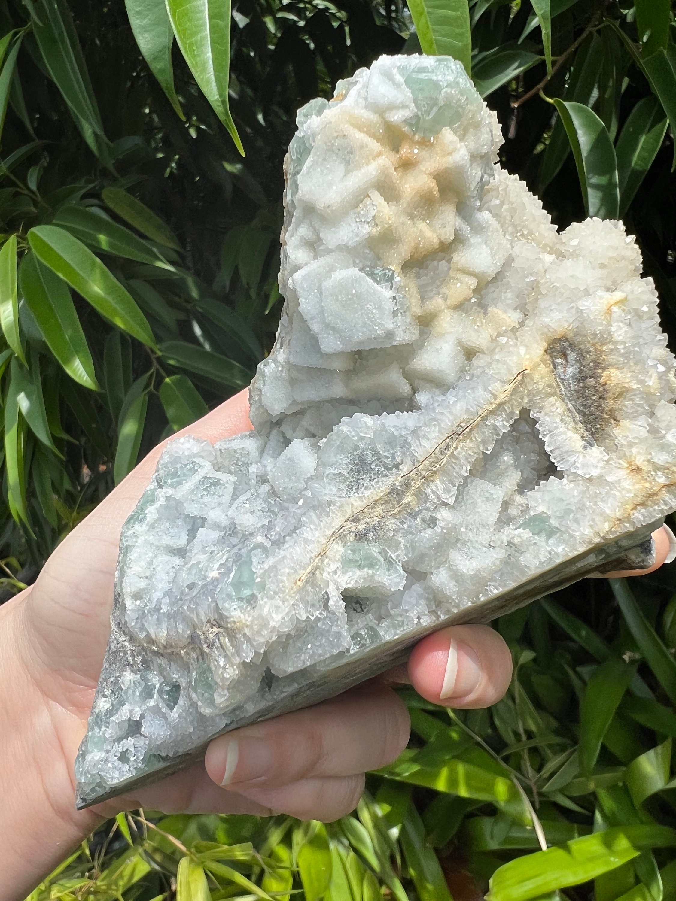 Translucent Green Sugar Fluorite Cluster with Druzy