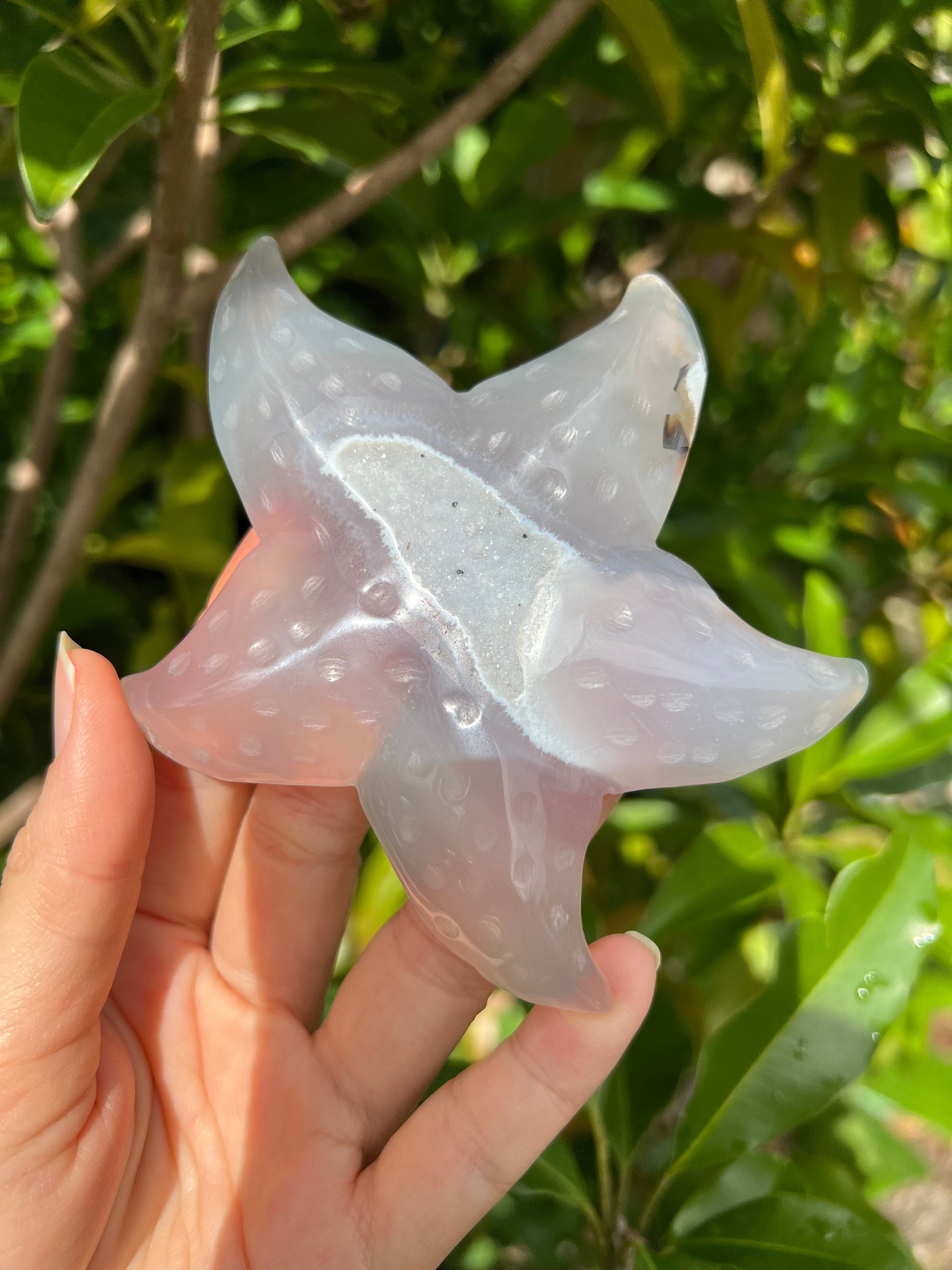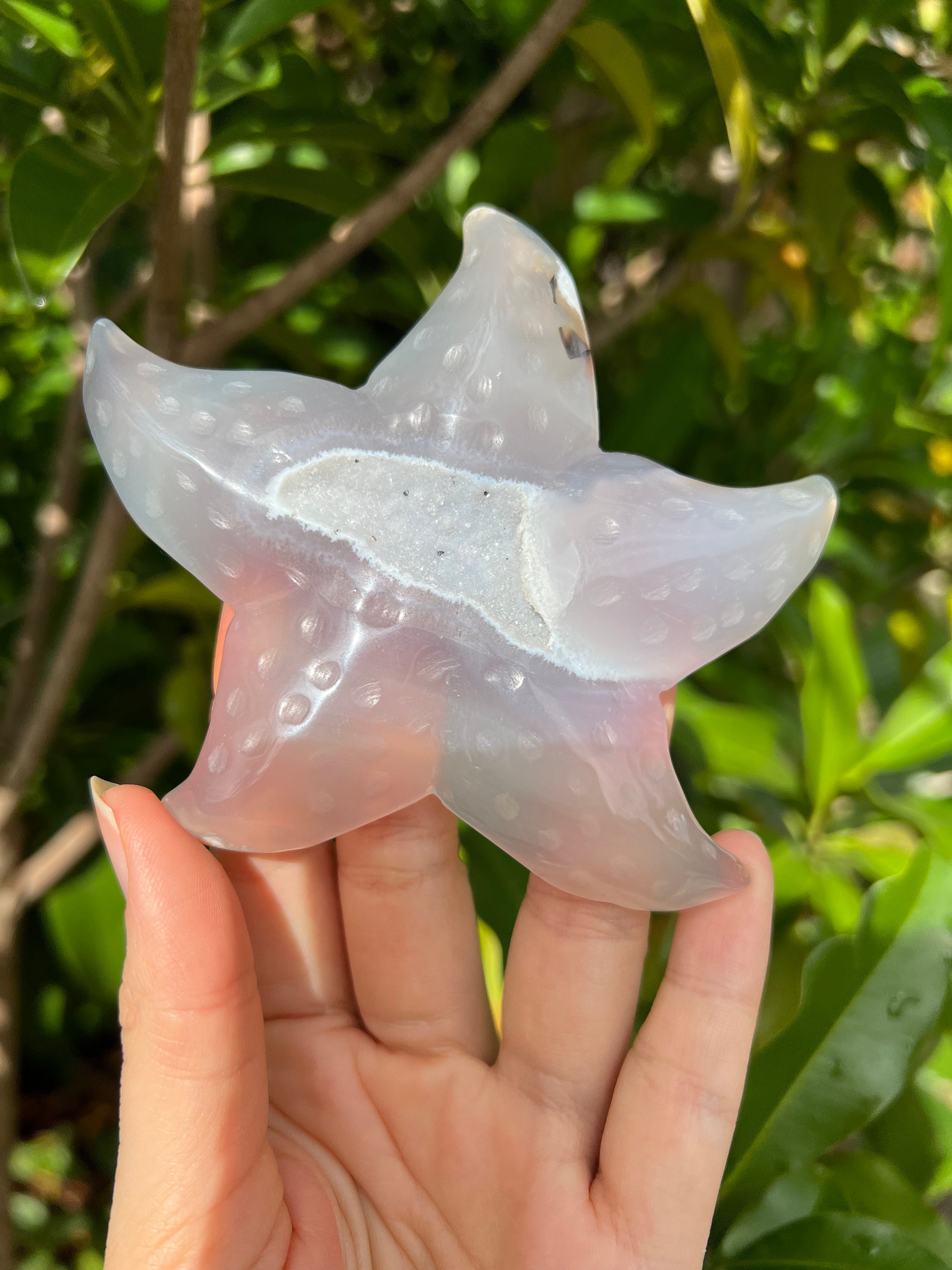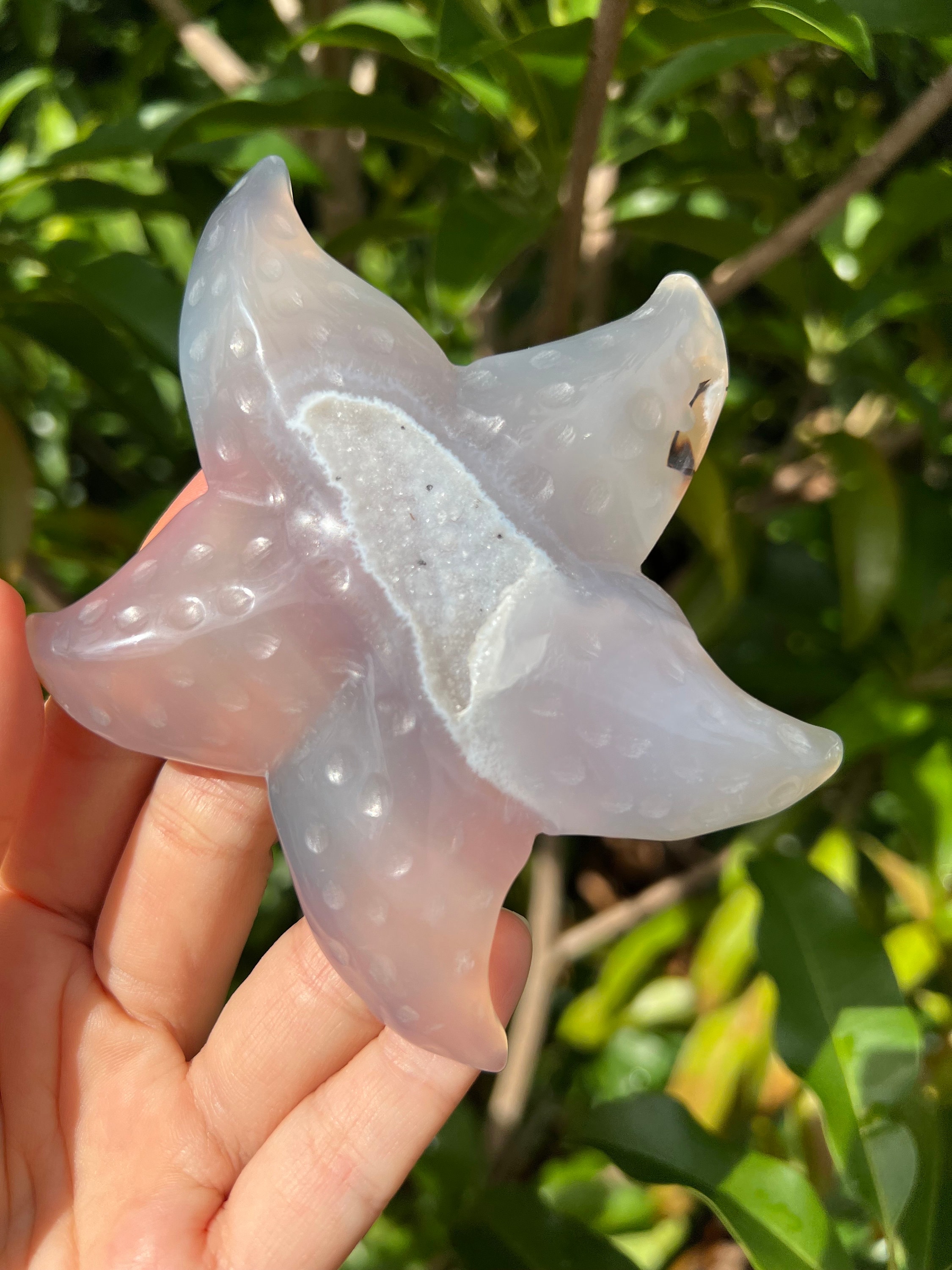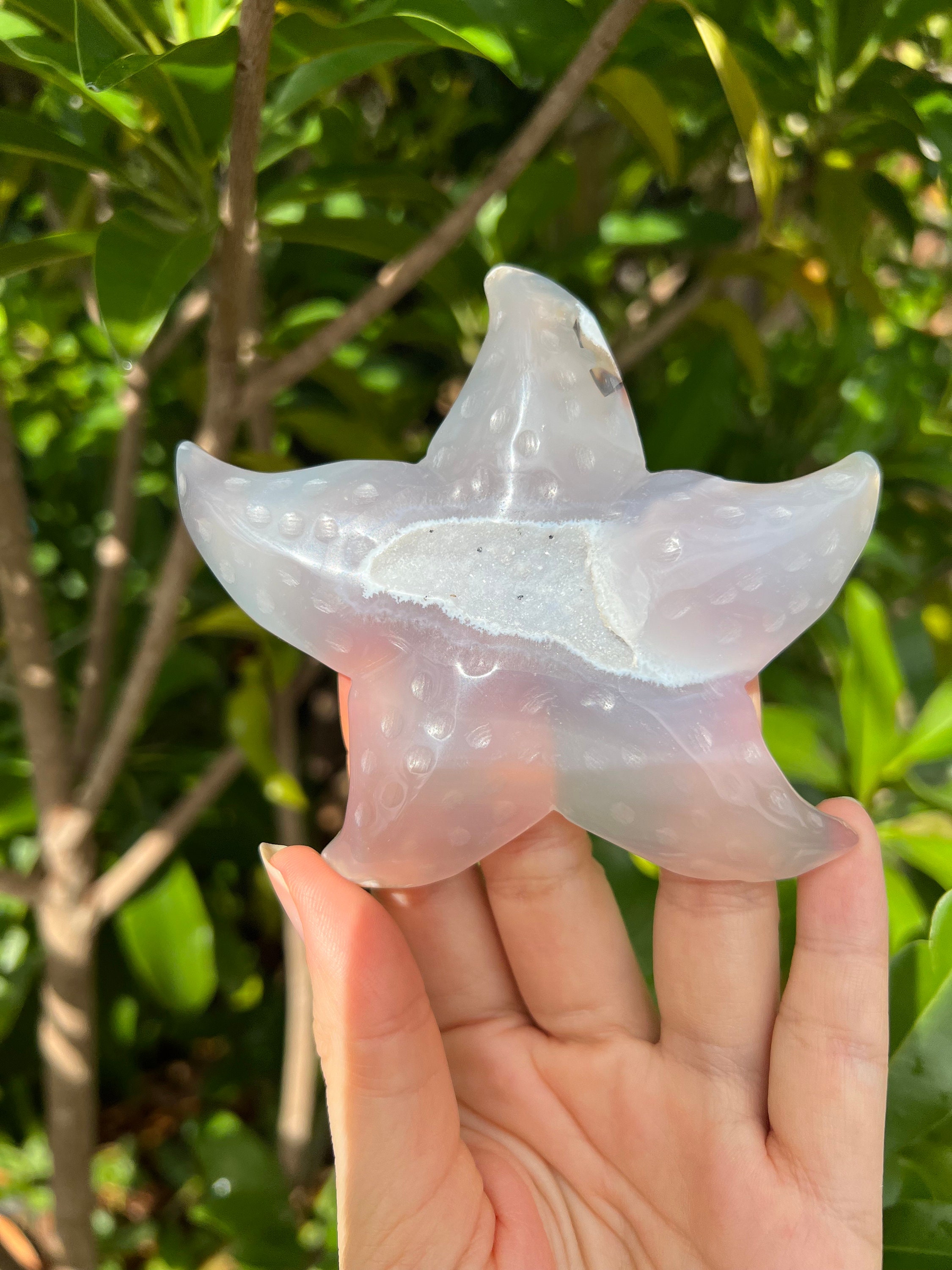 The starfish, a celestial creature of the sea, embodies themes of guidance, intuition, and the interconnectedness of life. As the agate cradles this marine marvel, it lends its stabilizing energy, reinforcing the starfish's symbolic message. Just as the starfish has the remarkable ability to regenerate, the agate amplifies its representation of resilience and transformation. This captivating carving serves as a potent reminder of the cosmic dance of life, where the starfish in agate becomes a beacon of hope, navigating the currents of existence with grace and enduring beauty.