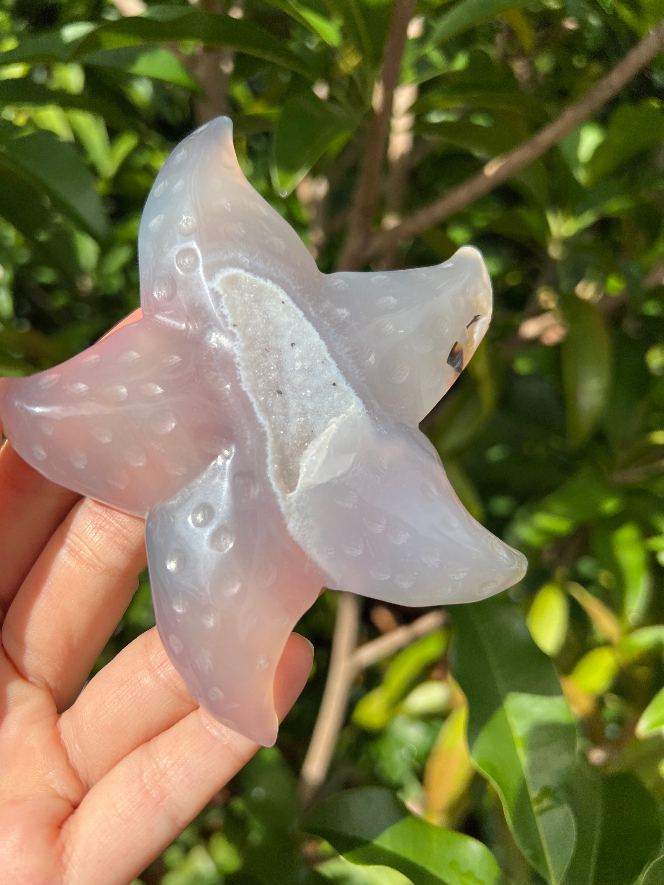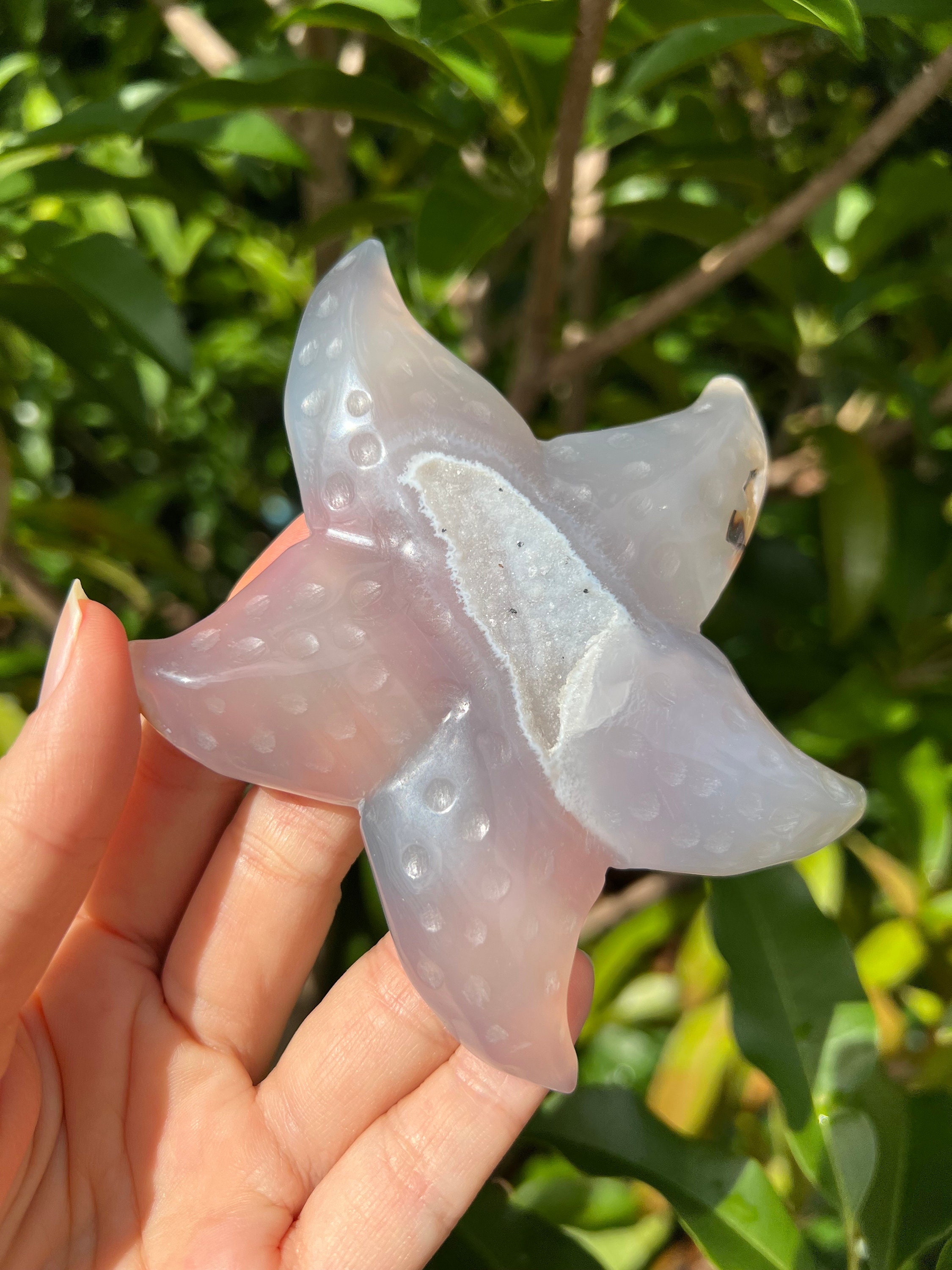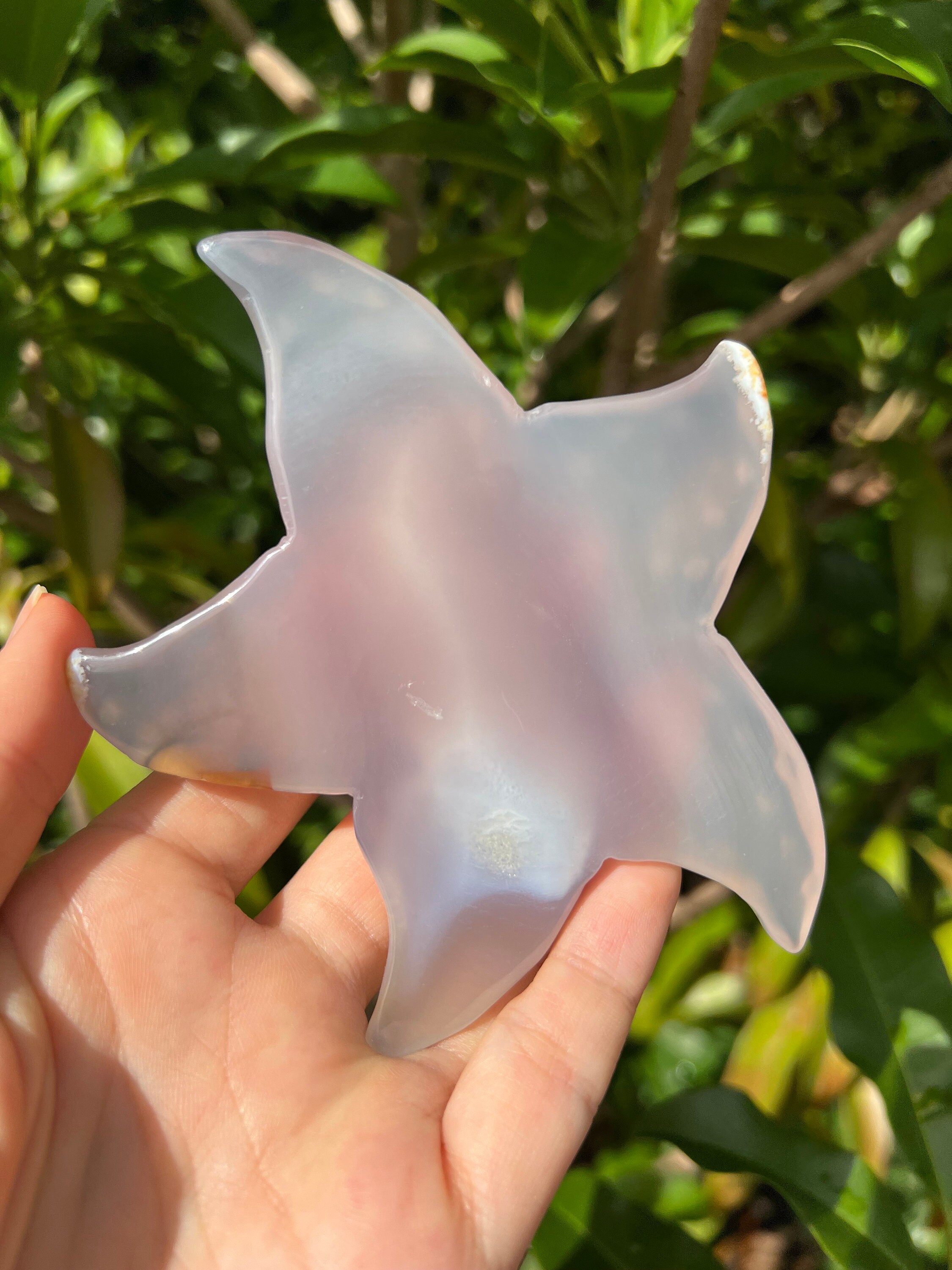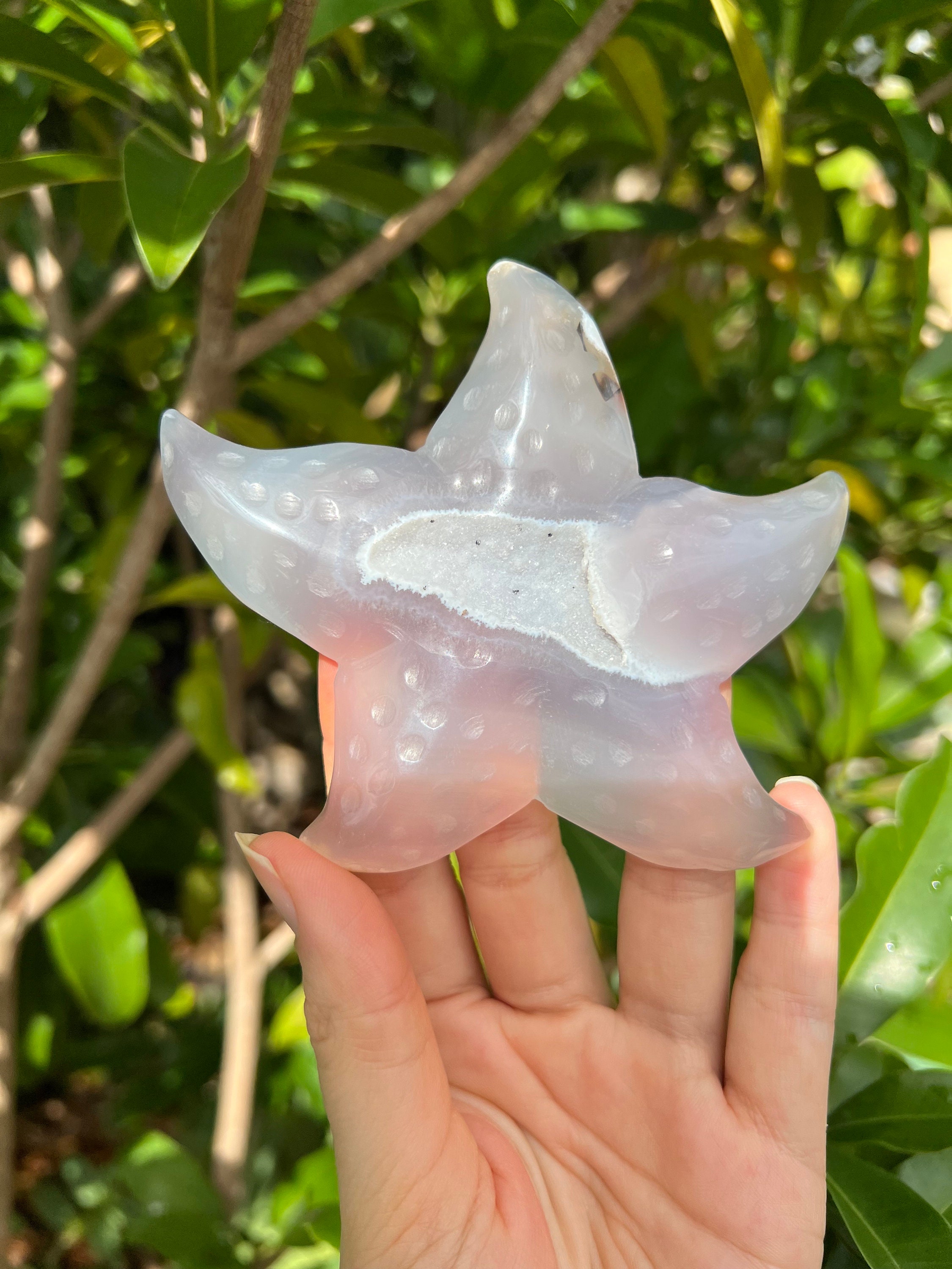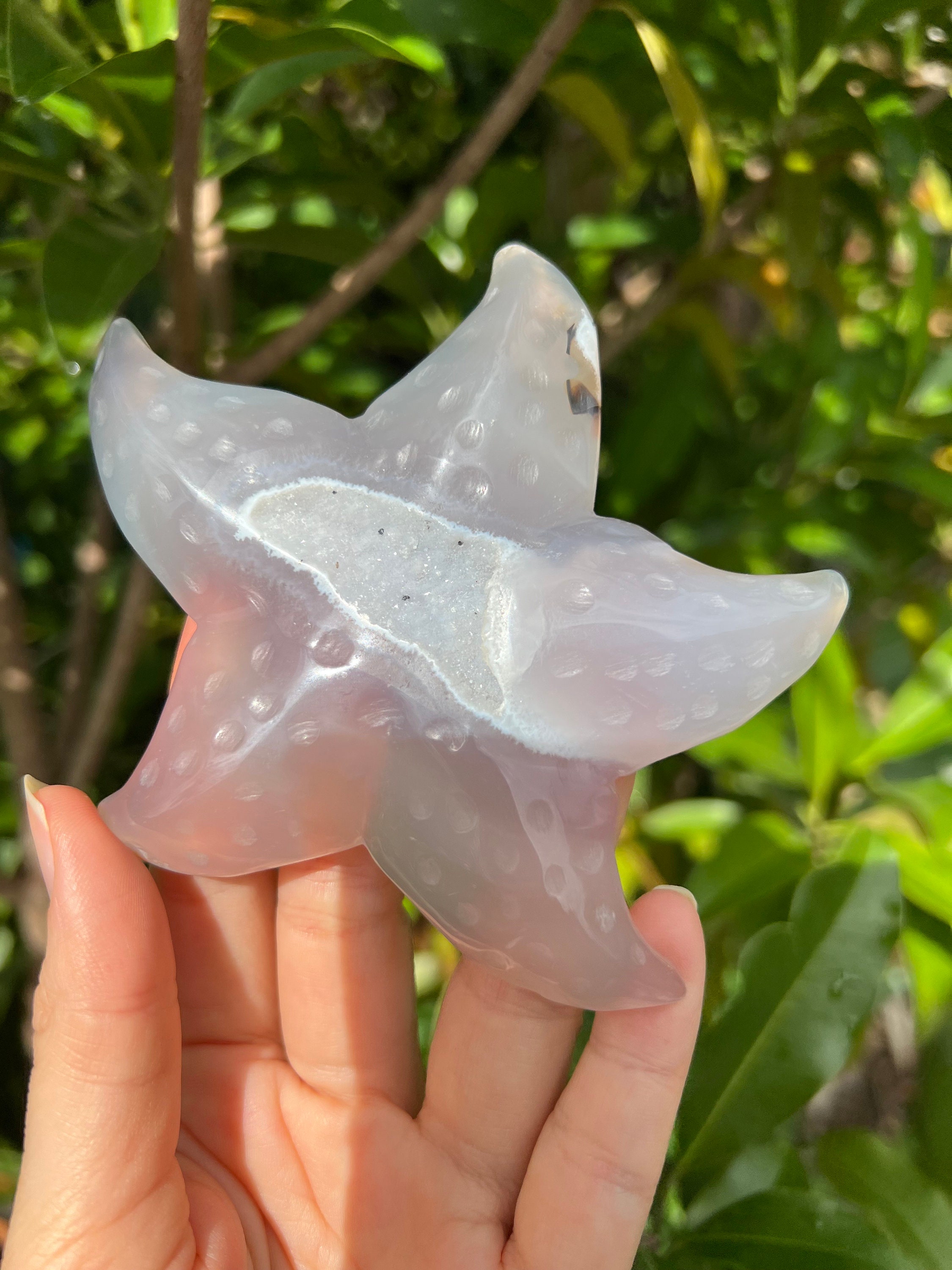 The starfish, a celestial creature of the sea, embodies themes of guidance, intuition, and the interconnectedness of life. As the agate cradles this marine marvel, it lends its stabilizing energy, reinforcing the starfish's symbolic message. Just as the starfish has the remarkable ability to regenerate, the agate amplifies its representation of resilience and transformation. This captivating carving serves as a potent reminder of the cosmic dance of life, where the starfish in agate becomes a beacon of hope, navigating the currents of existence with grace and enduring beauty.