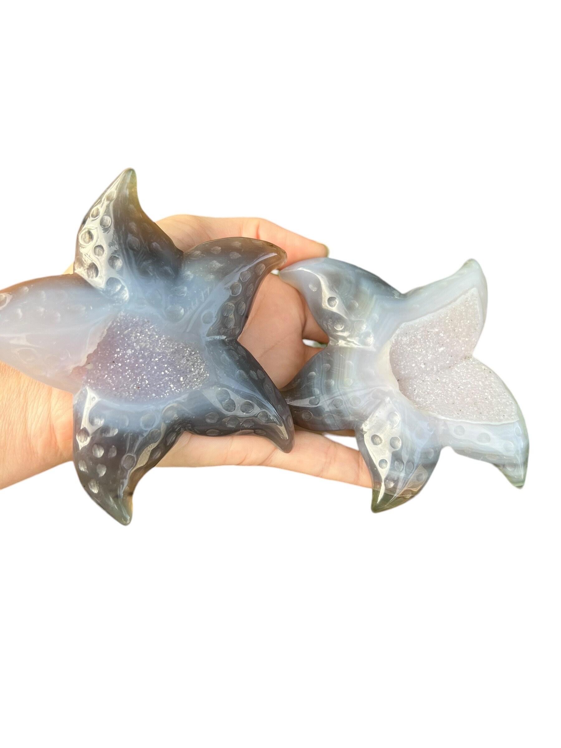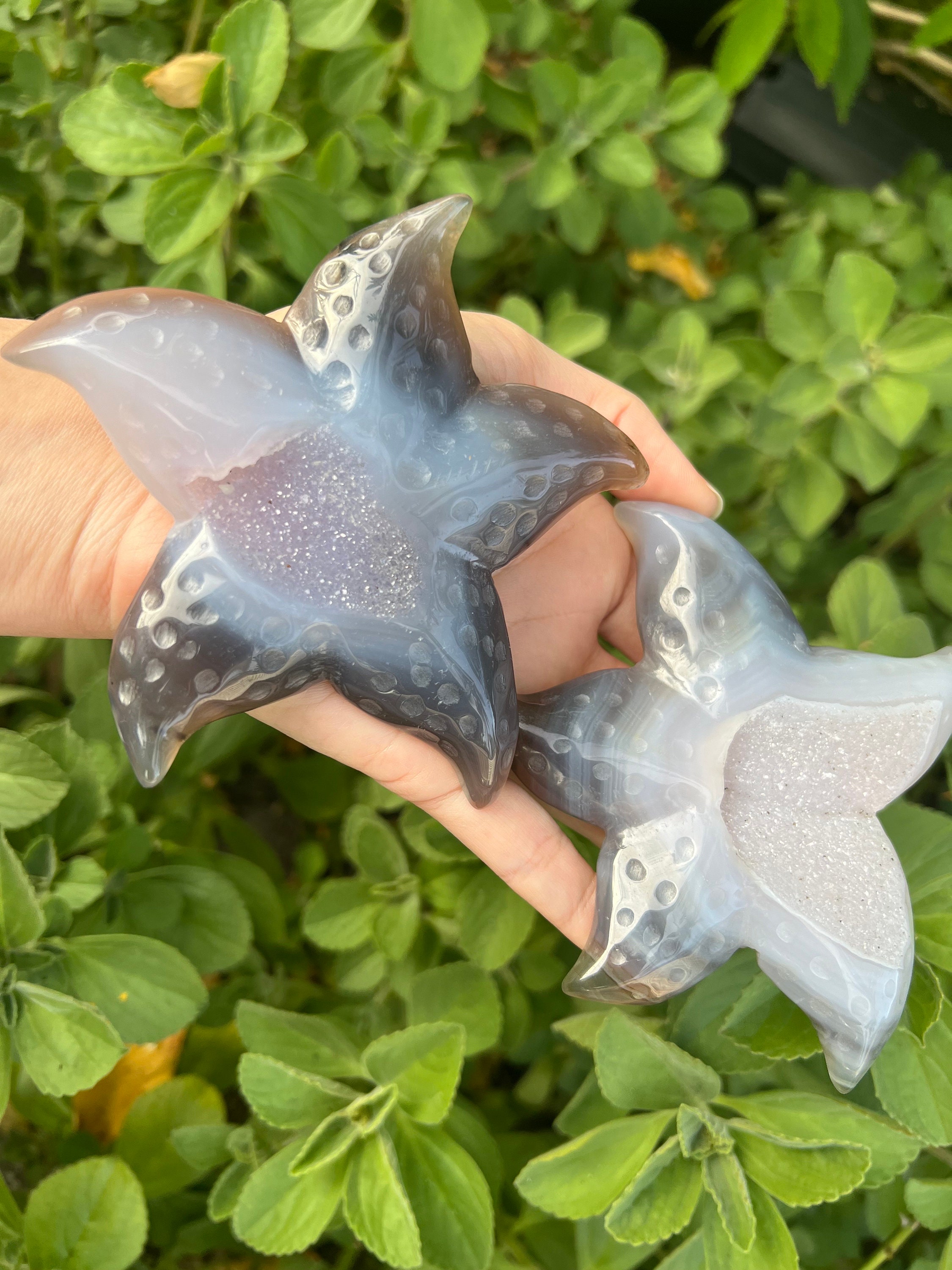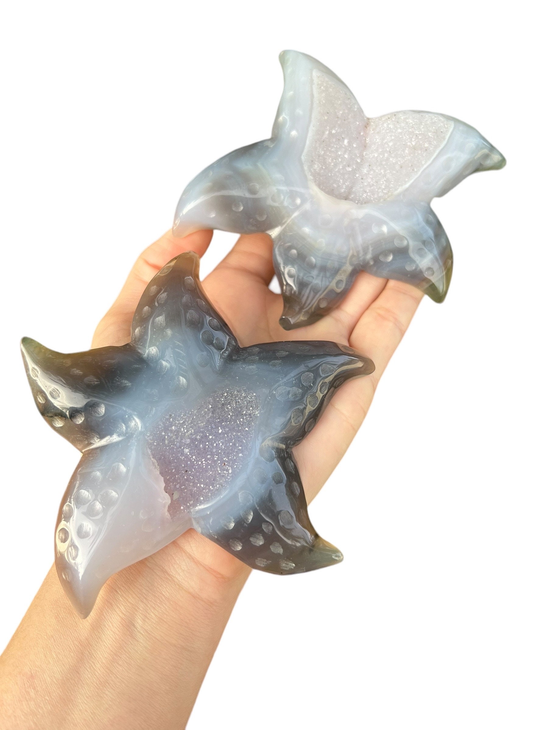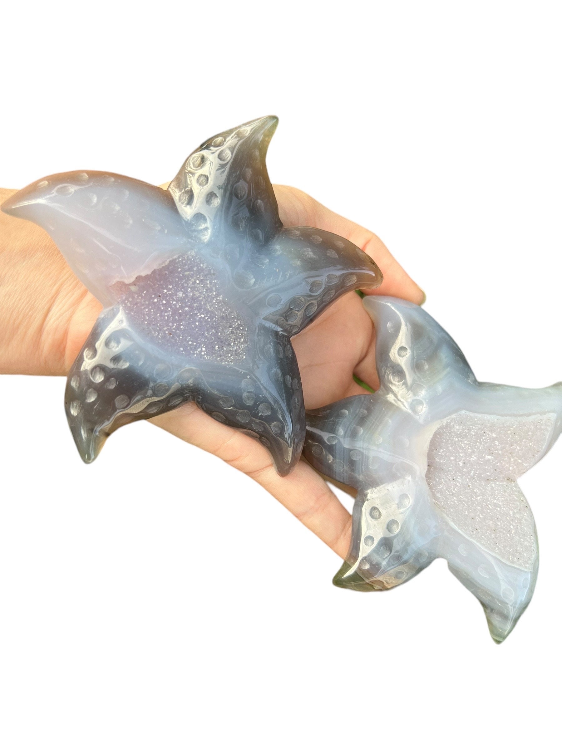 The starfish, a celestial creature of the sea, embodies themes of guidance, intuition, and the interconnectedness of life. As the agate cradles this marine marvel, it lends its stabilizing energy, reinforcing the starfish's symbolic message. Just as the starfish has the remarkable ability to regenerate, the agate amplifies its representation of resilience and transformation. This captivating carving serves as a potent reminder of the cosmic dance of life, where the starfish in agate becomes a beacon of hope, navigating the currents of existence with grace and enduring beauty.