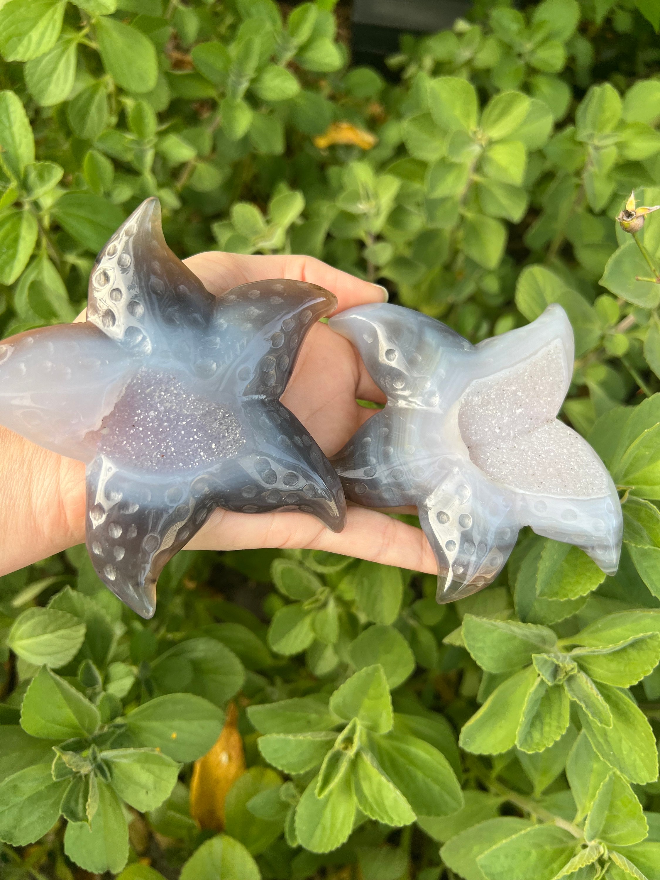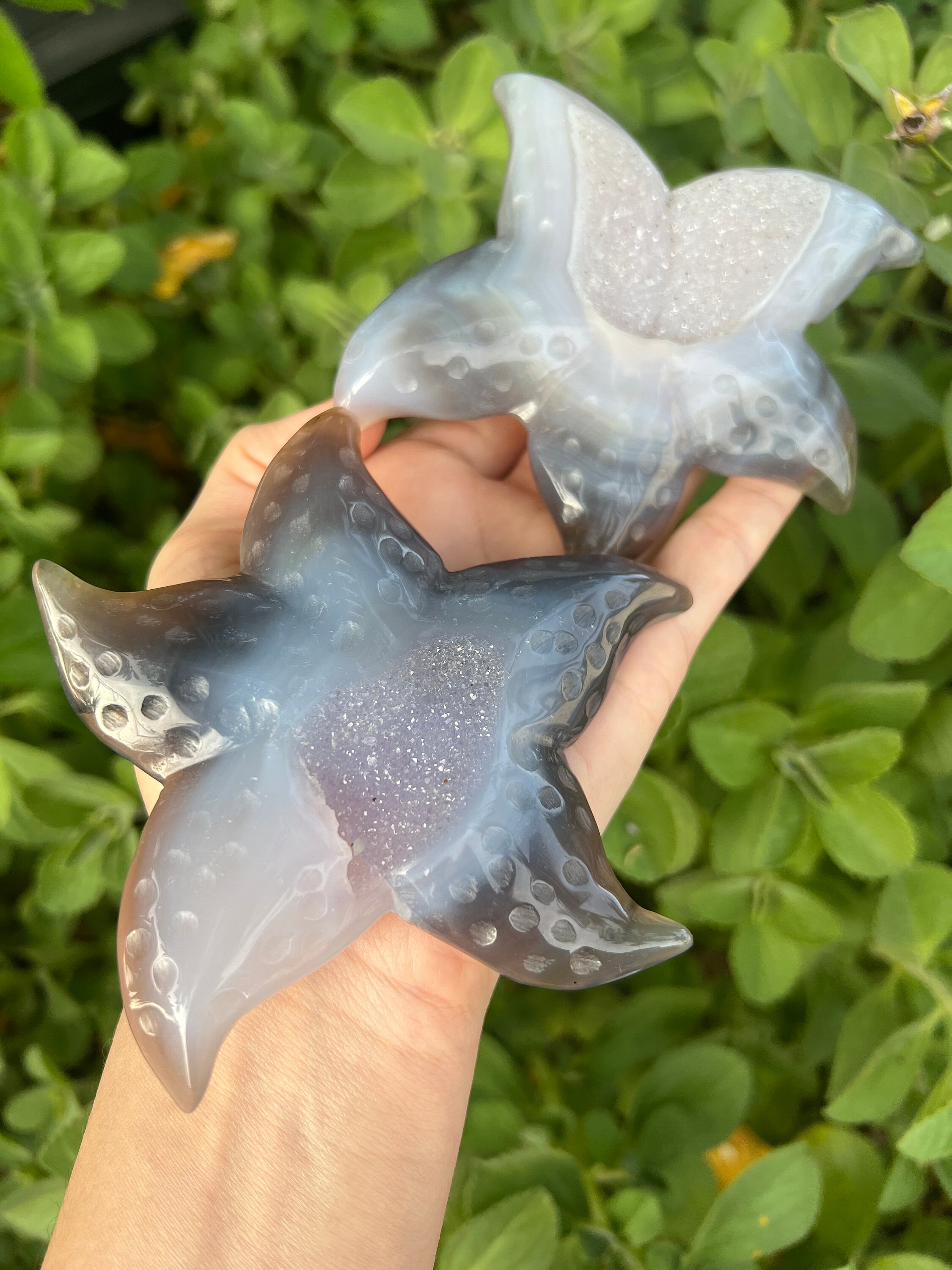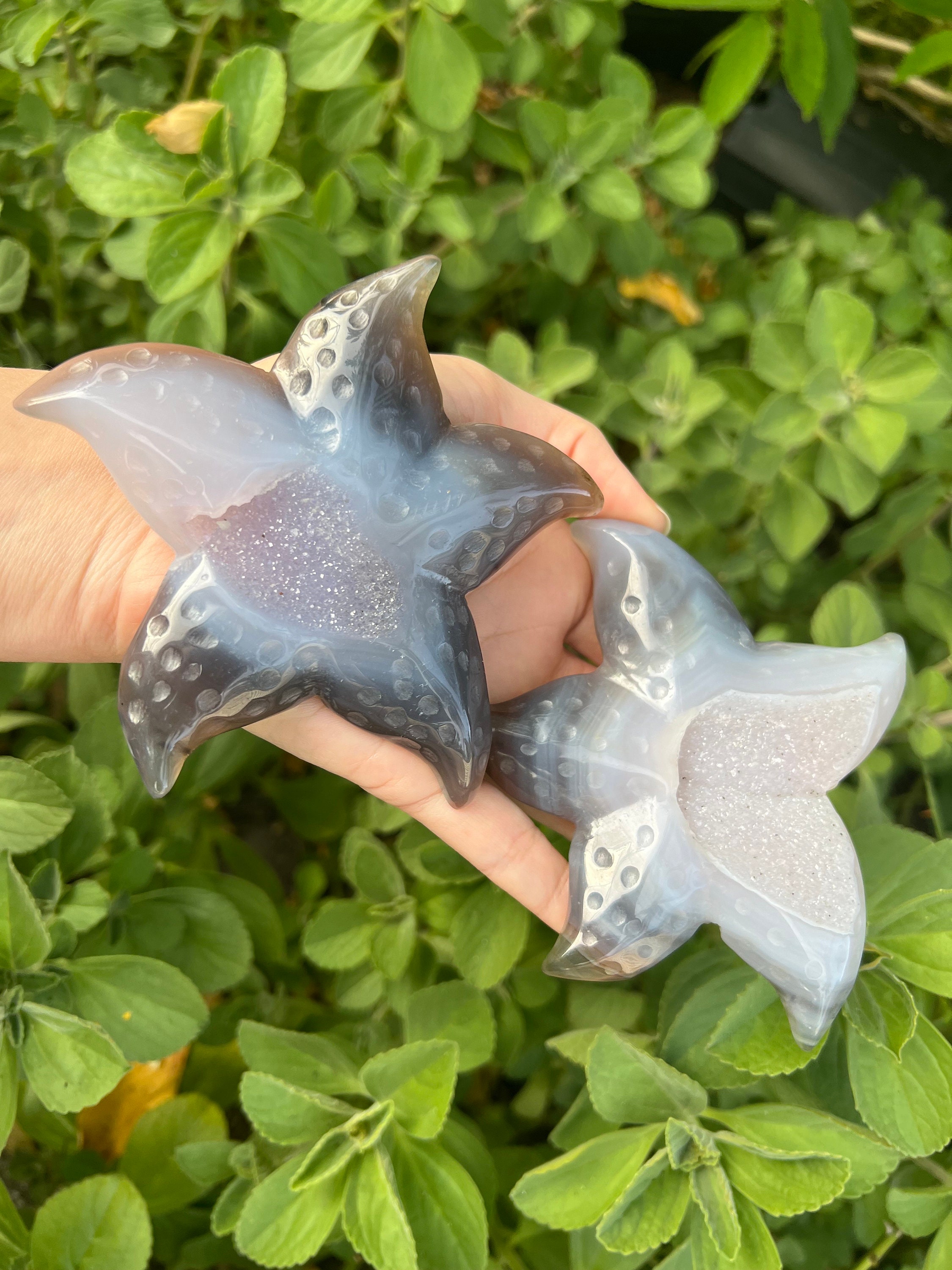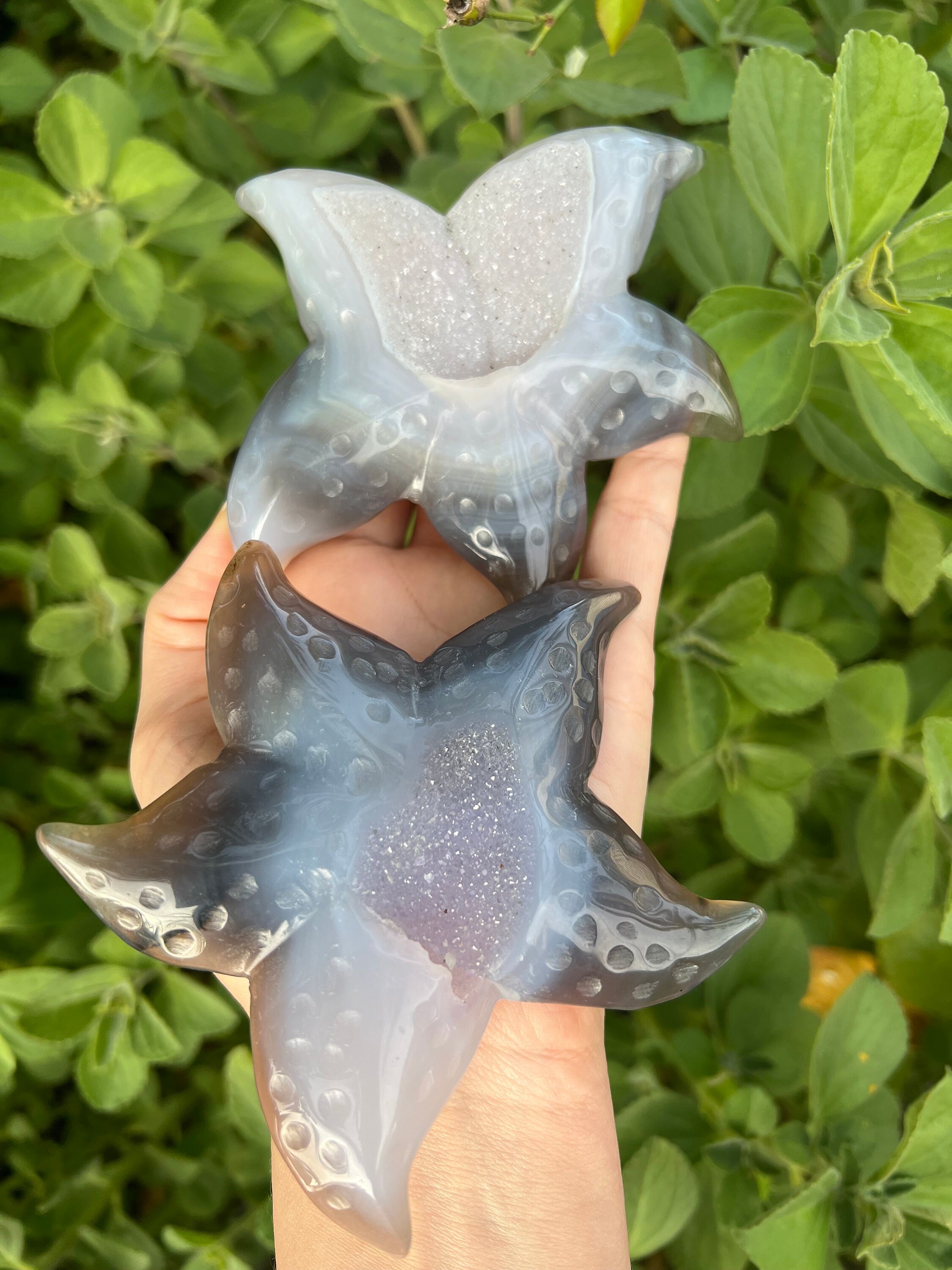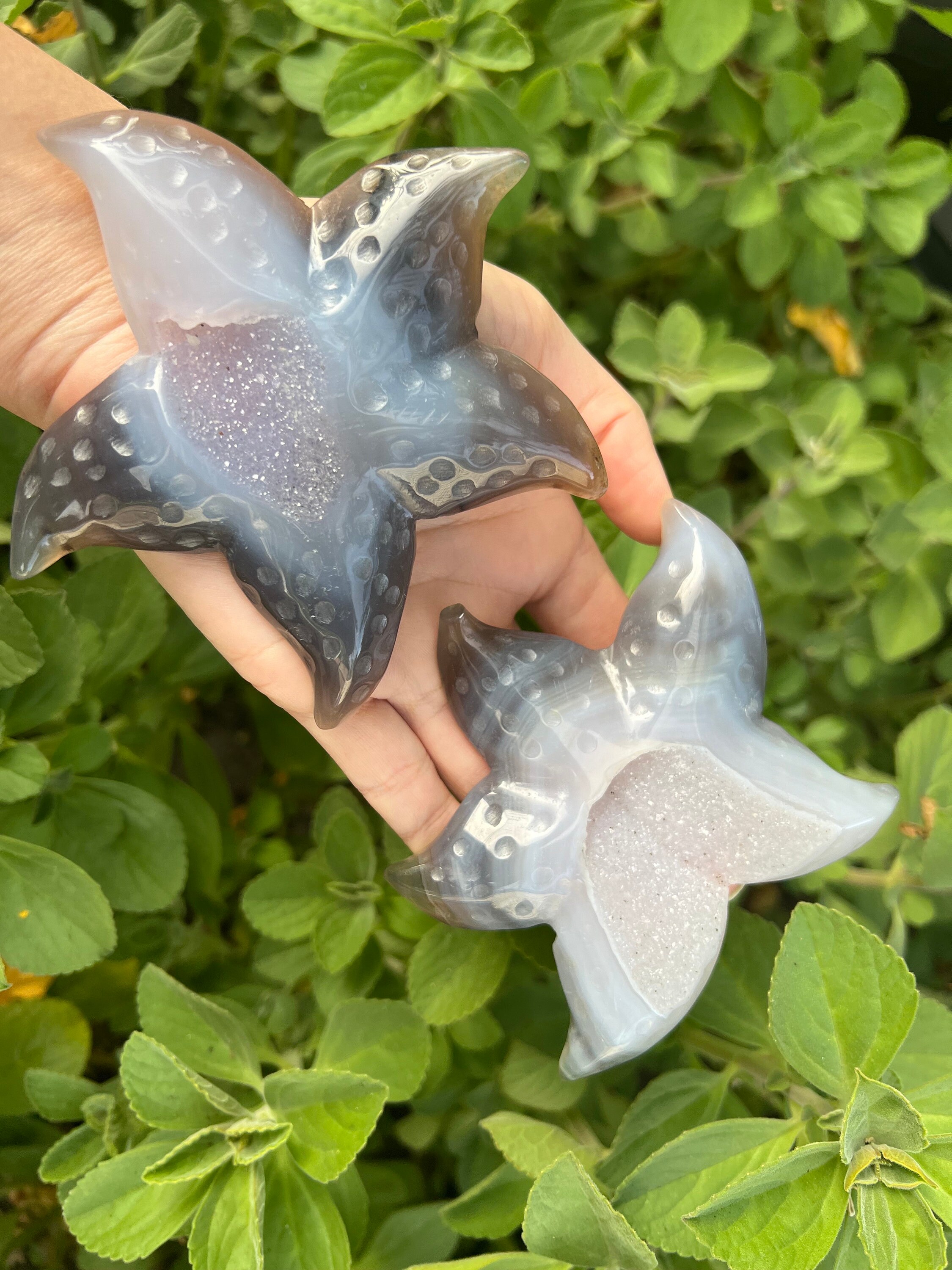 The starfish, a celestial creature of the sea, embodies themes of guidance, intuition, and the interconnectedness of life. As the agate cradles this marine marvel, it lends its stabilizing energy, reinforcing the starfish's symbolic message. Just as the starfish has the remarkable ability to regenerate, the agate amplifies its representation of resilience and transformation. This captivating carving serves as a potent reminder of the cosmic dance of life, where the starfish in agate becomes a beacon of hope, navigating the currents of existence with grace and enduring beauty.