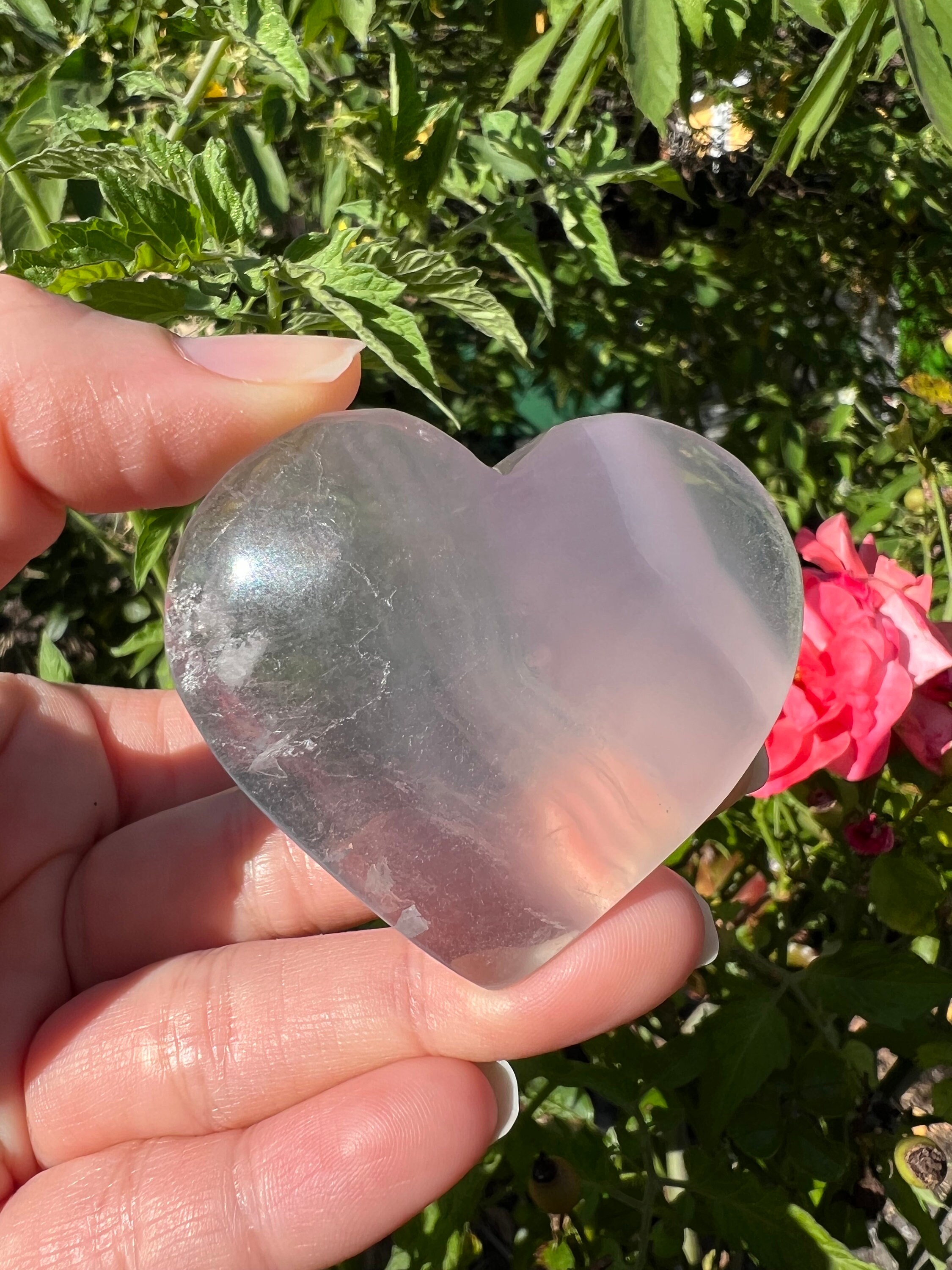 Beautiful Yttrium Fluorite Heart Palm Stone